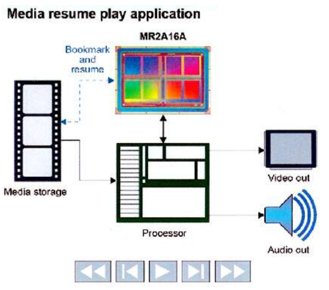 MRAM還適用于具有簡歷播放功能的娛樂應(yīng)用程序。掉電期間,指示播放媒體時間戳的書簽會快速存儲在非易失性MRAM中。然后幾乎立即進行后續(xù)播放并繼續(xù)播放(下圖1)。
