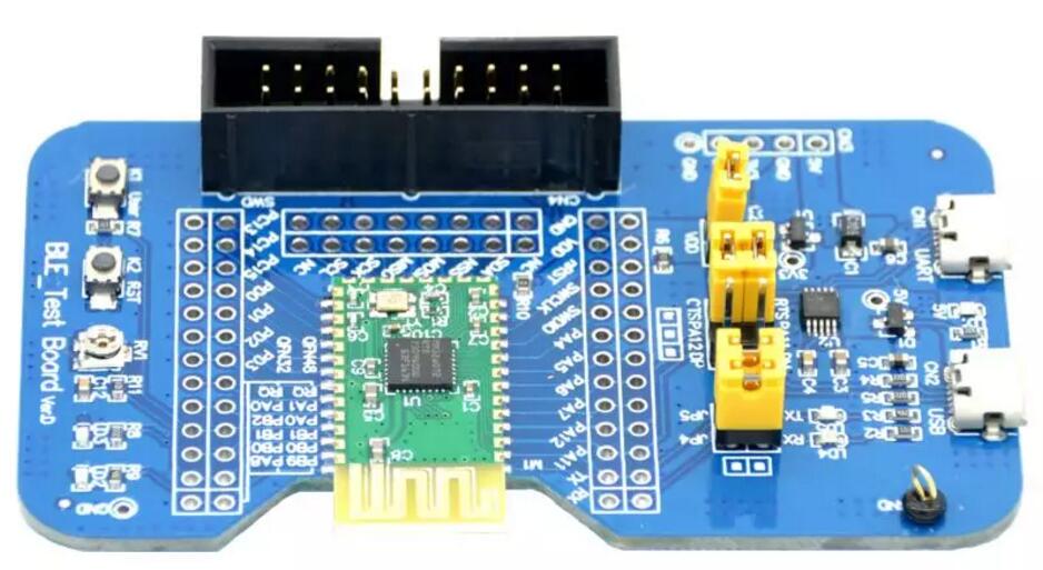 本方案基于MM32 BLE_Test Board進(jìn)行測試驗證,藍(lán)牙自拍桿應(yīng)用在硬件上只需要一個功能按鍵即可,藍(lán)牙部分使用藍(lán)牙控制的最小系統(tǒng),我們將這個按鍵接到MCU的PA0引腳,既可以用做喚醒引腳使用,又可以用做自拍的功能引腳。