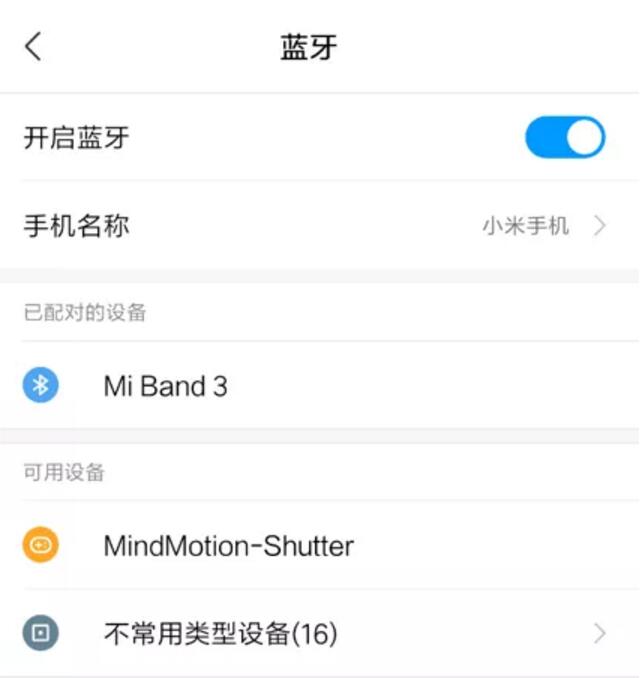 2. 選擇對應(yīng)名稱(MindMotion-Shutter)的藍(lán)牙設(shè)備并進(jìn)行配對。
