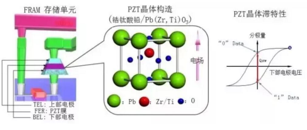FRAM是運(yùn)用鐵電材料(PZT等)的鐵電性和鐵電效應(yīng)來(lái)進(jìn)行非易失性數(shù)據(jù)存儲(chǔ)又可以像RAM一樣操作。