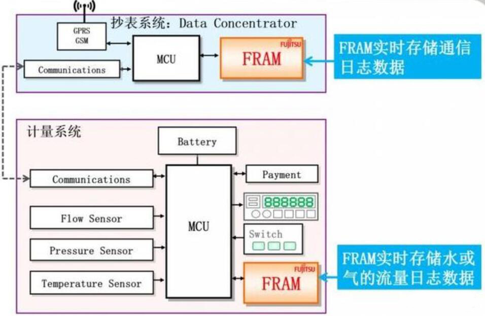 圖1:富士通FRAM在智能水、氣表計中的應(yīng)用