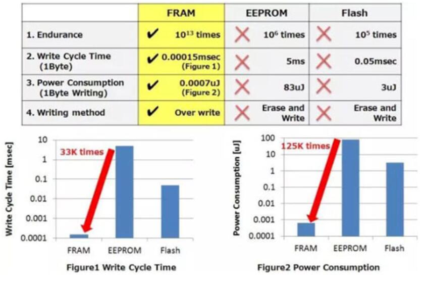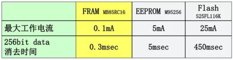 FRAM、EEPROM、FLASH工作電流與消去時(shí)間對比