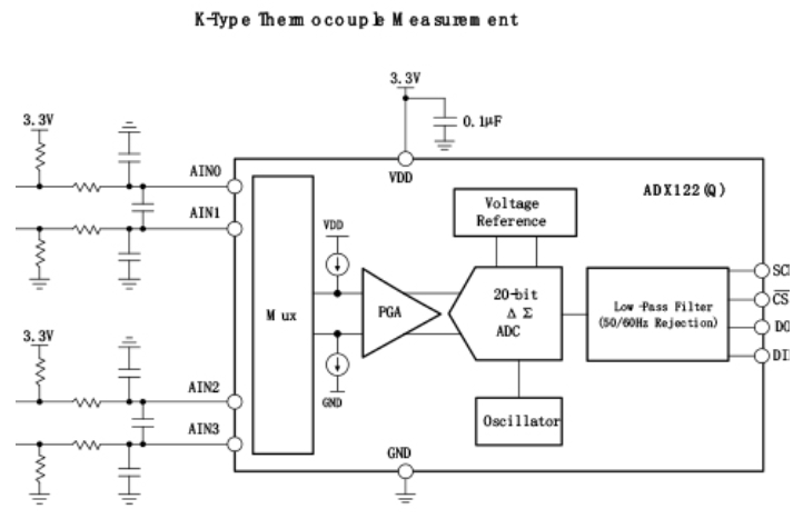 ADX122(Q)內部數字濾波器提供靈活的輸出數據速率,從10SPS到3571SPS??构ゎl干擾濾波器可以配置為50Hz或60Hz抑制模式,也可以配置為同時抑制50Hz和60Hz工頻干擾。在連續(xù)轉換模式或單次模式下工作。內部濾波器在兩種模式下都是單周期穩(wěn)定的。單次模式轉換一次后器件自動掉電;因此,空閑期間的功耗顯著降低。ADC轉換結果通過SPI™接口傳輸。同時ADX122(Q)可以工作在較寬的電源范圍,這些特性使其非常適合功率和空間受限的傳感器測量應用。