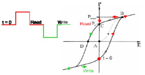 FRAM中的讀取操作具有破壞性,因?yàn)樗枰袚Q極化狀態(tài)才能感知其狀態(tài)。在初始讀取之后,讀取操作必須將極化恢復(fù)到其原始狀態(tài),這會(huì)增加讀取時(shí)間的周期。