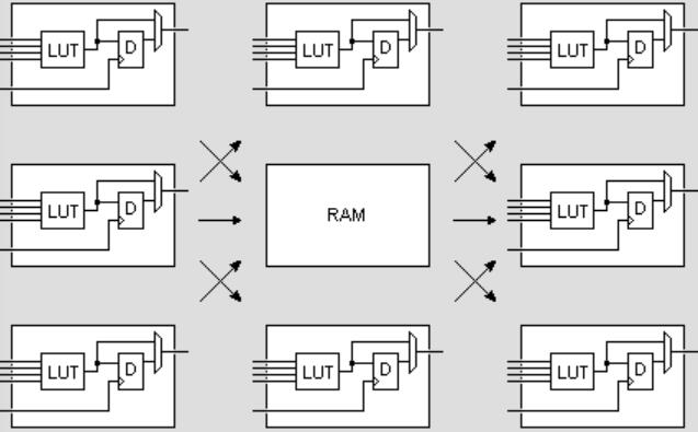 ram塊,這些塊在邏輯元素之間分布并由邏輯元素控制。