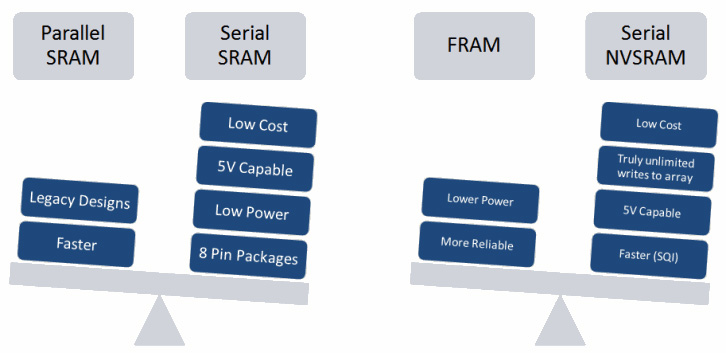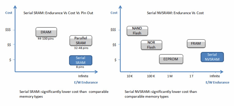 串行SRAM和NVSRAM在尺寸、電壓、速度、功耗和成本等方面帶來(lái)了諸多優(yōu)勢(shì)。